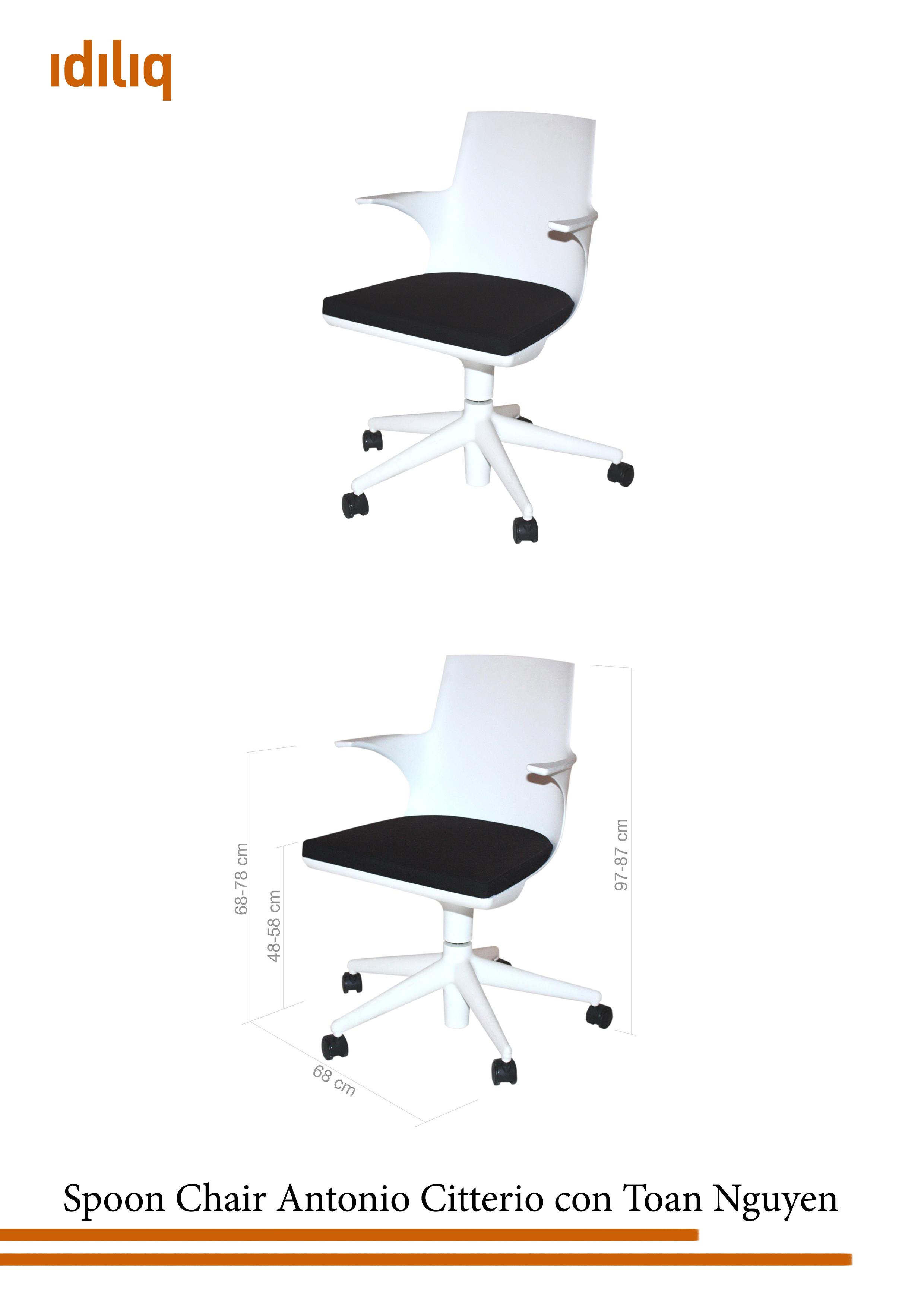Spoon Chair mit Rädern Weiß/schwarzes Kissen